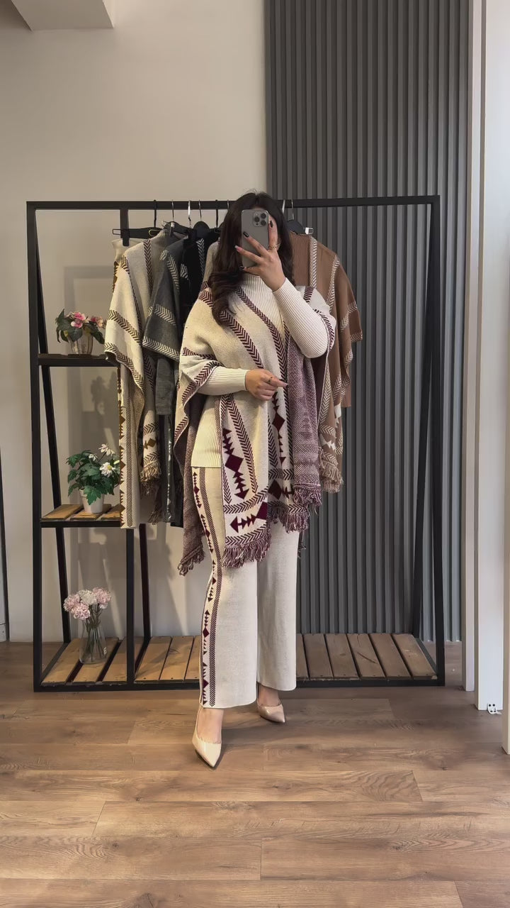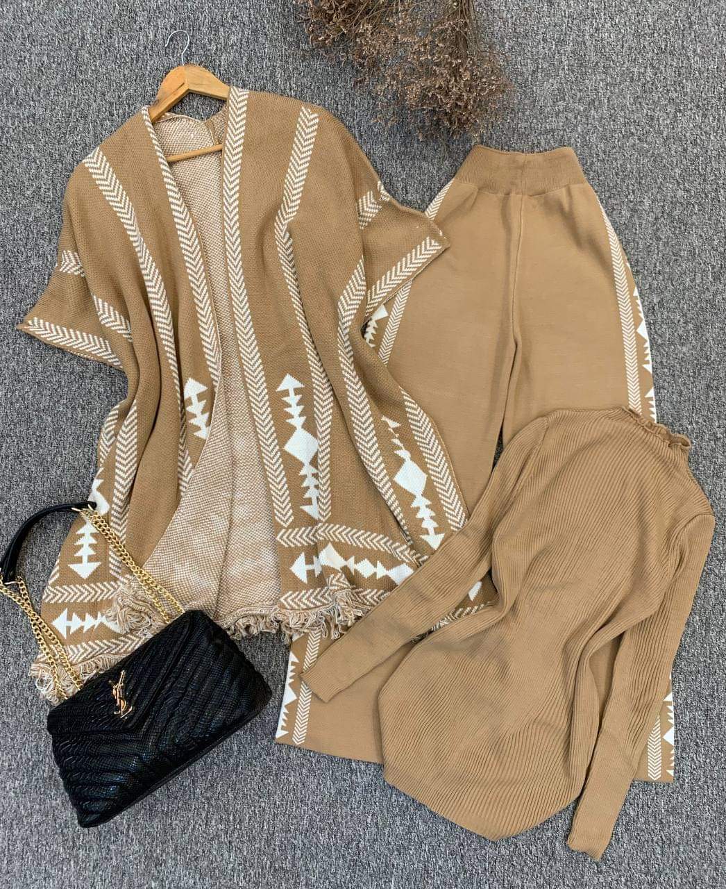 Apportez une touche d’élégance et de raffinement à votre garde-robe avec cet ensemble trois pièces en laine de qualité supérieure. Conçu pour allier confort et style, il se compose d’un pantalon élégant, d’un body ajusté et d’une cape sophistiquée, formant une tenue harmonieuse et moderne.
